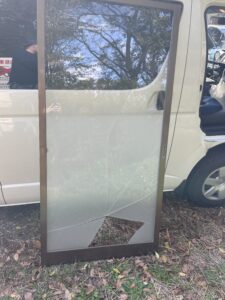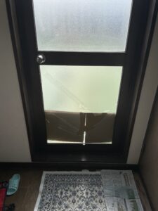 茨城県つくば市のお客様から、強風でドアを開けた際にガラスを割ってしまったとの事で、次の日が雨予報でしたので当日中にガラス交換をして欲しいとの事で、強風の中での作業は、時間がかかってしまう旨説明をしご了