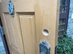 千葉市のホテルのオーナー様より正面玄関の鍵の調子が悪いので見てほしいとのご依頼がありました。現場を拝見したところ、シリンダー内部の錆が浮き出ていて整備しても良くならない可能性があることをお伝えしたとこ